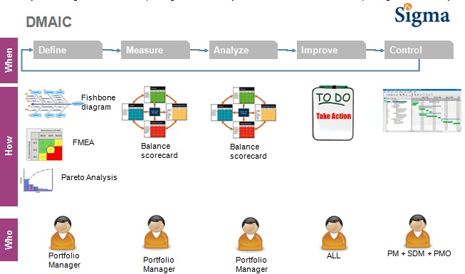- Six Sigma DMAIC, to define a life cycle of activities (for instance each wave will be by quarters).