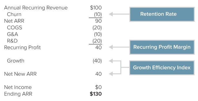 - Growth Efficiency Index: How much new recurring revenue can you get out of a given investment in sales and marketing? If you spend $1 on sales and marketing, how many new recurring revenue dollars does that buy you?A healthy ratio for a b2b SaaS company with a direct sales force is 1:1. Invest $1 to book $1 in new recurring revenues.