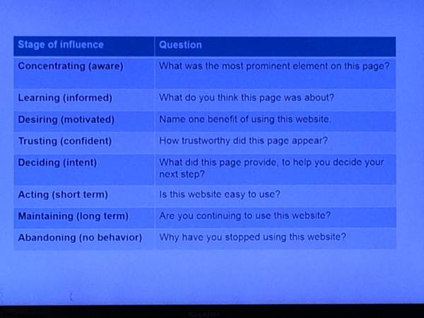 Five seconds test: this practical exercise was the best part of the session. After look for a web/mobile page, we replied to these questions.