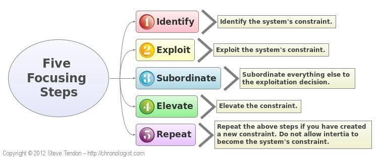 is the basis of the history of the book The Goal (written by Eliyahu Goldratt), that simplifies the application of this theory in 5 steps.
