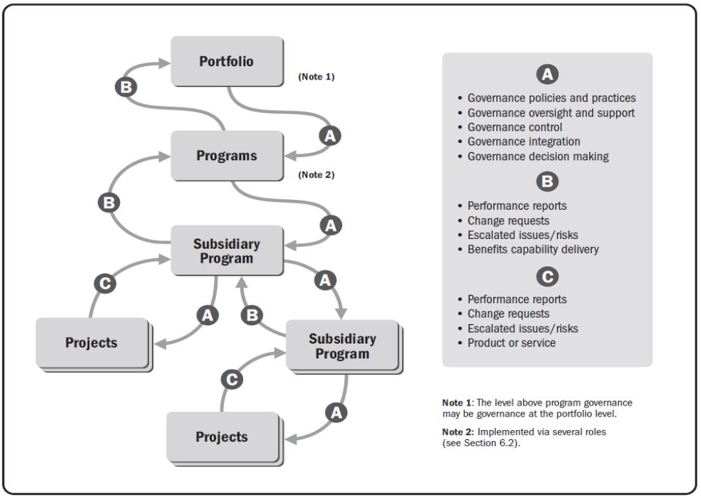 Program governance is impacted by organizational governance, which is a structured way to provide control, direction, and coordination through people, policies, and processes to meet organizational strategic and operational.