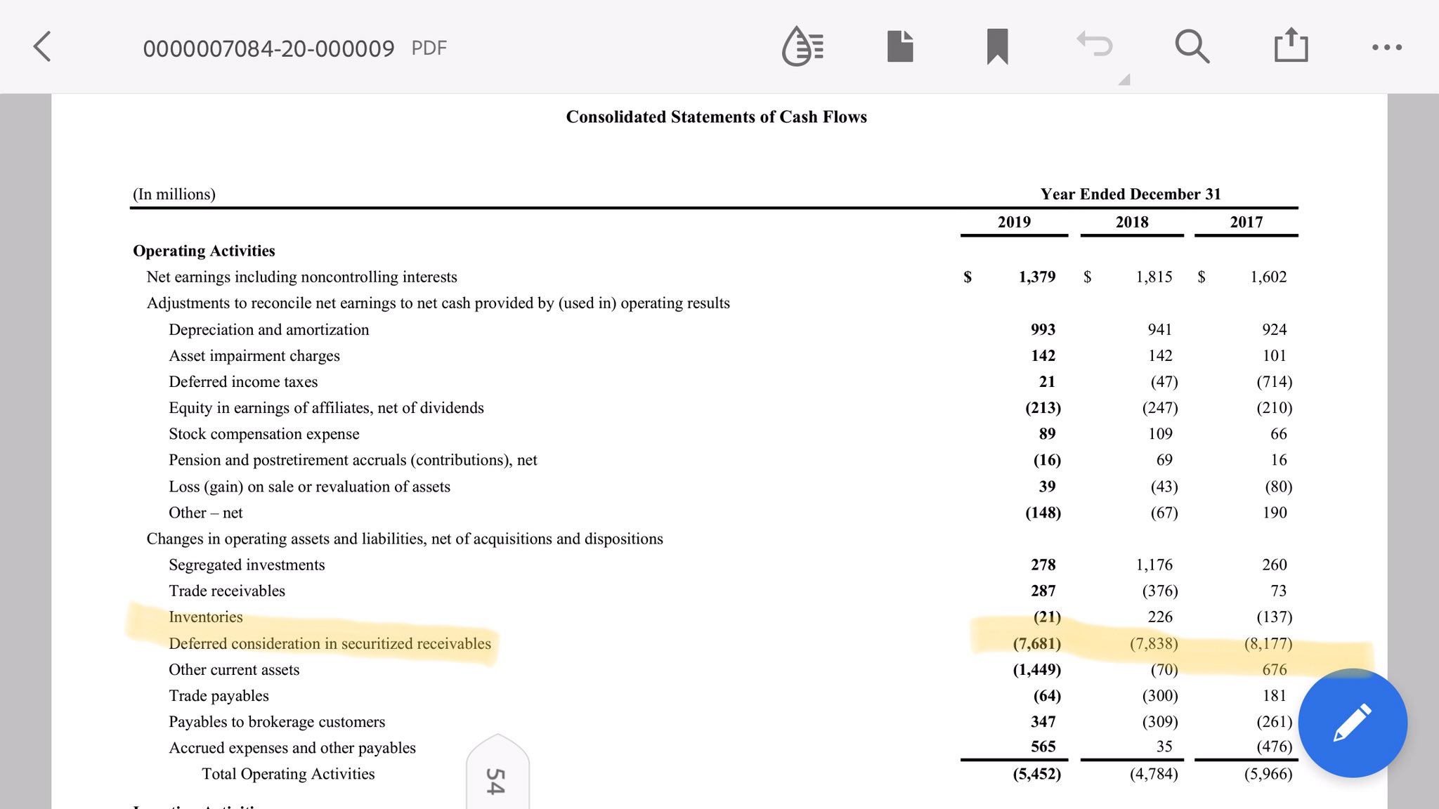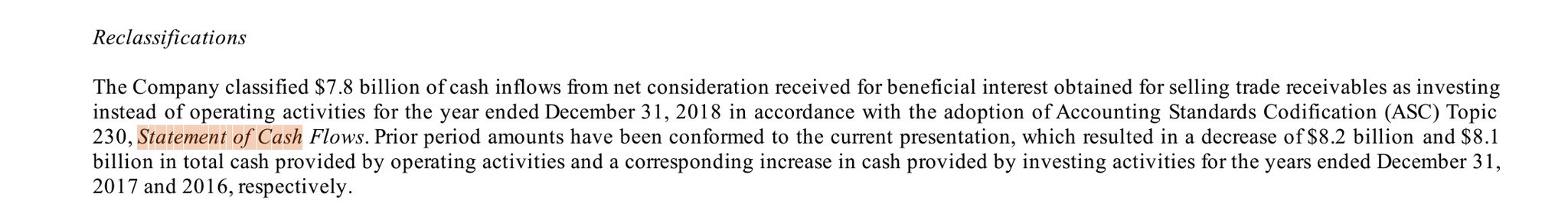 I received an answer. And it was that a change in the US GAAP accounting classification made $ADM to reclassify the early collection of revenue that $ADM receives in advance,