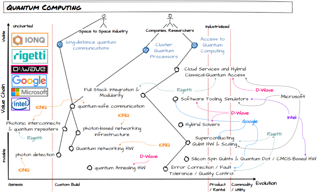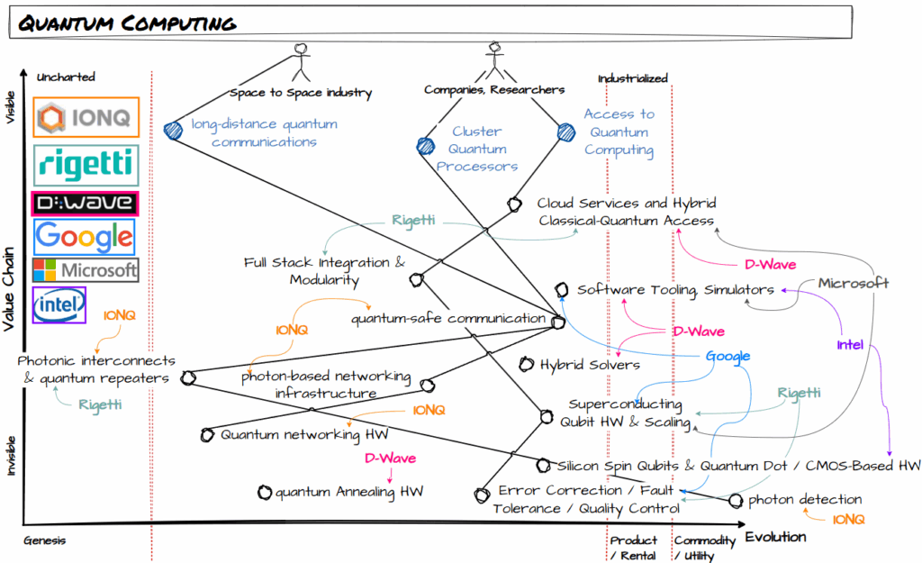 I have been reading about Quantum Computing, and with the purpose of organize ideas, I did a Wardley Map for it.