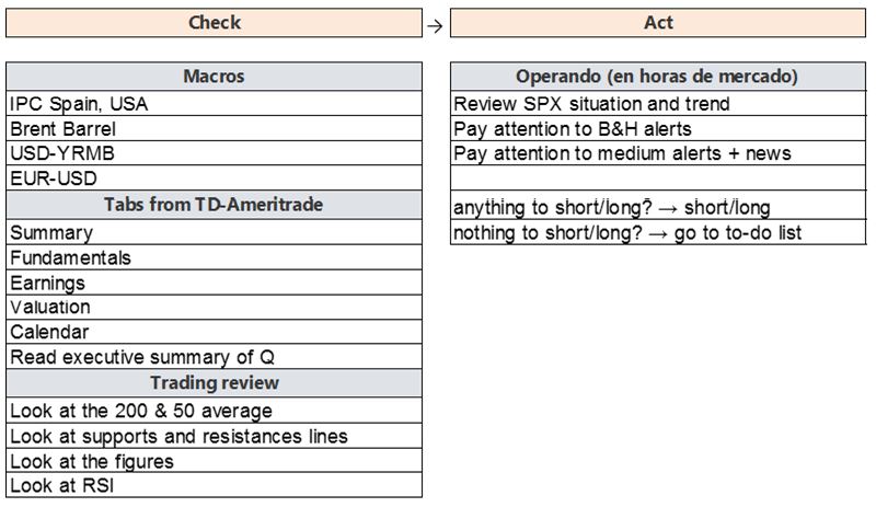 Tengo es un cuadro de actividades que me he creado usando el “Plan, Do, Check, Act” parecido al de la metodología Seis Sigma.
