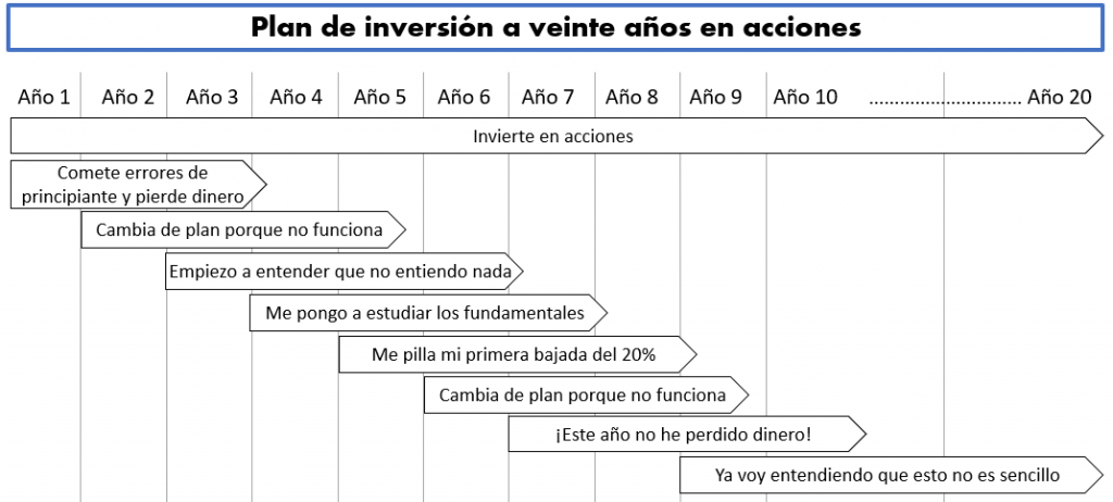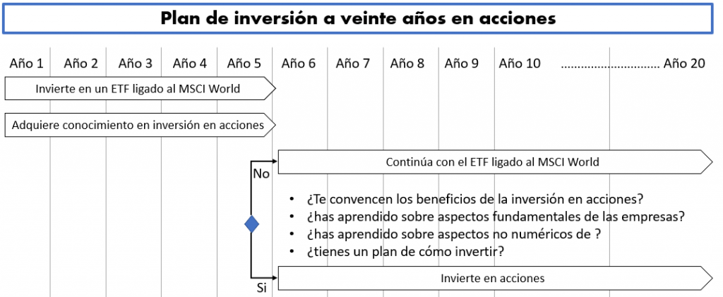 A partir de ahí vino la petición: «A ver, tu eres jefe de proyecto, estás acostumbrado a hacer planifiacciones, hazme una: Quiero un plan de inversión a veinte años en acciones«.