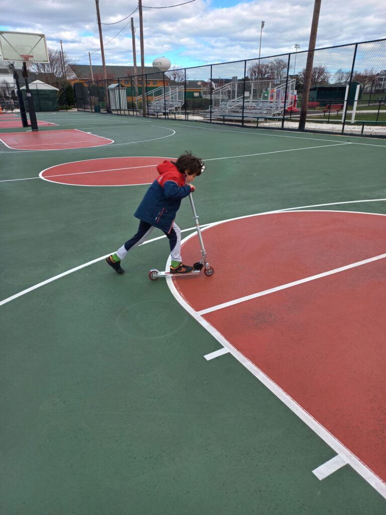 Riding the scooter