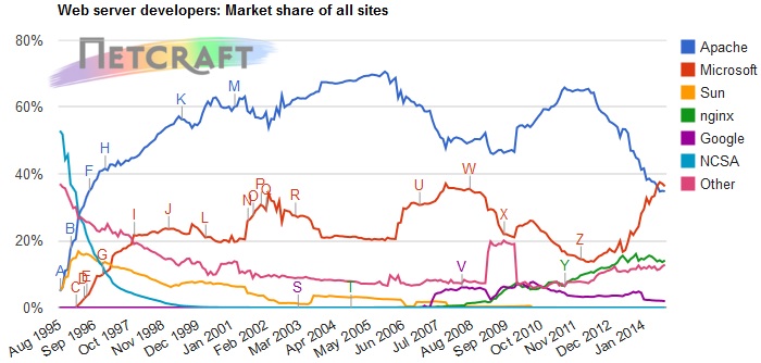 Netcraft, Microsoft May 4, 2021September 24, 2014 by joapen Microsoft, leading the market share of all sites related to web servers (37.07%). I’m impressed by this data.