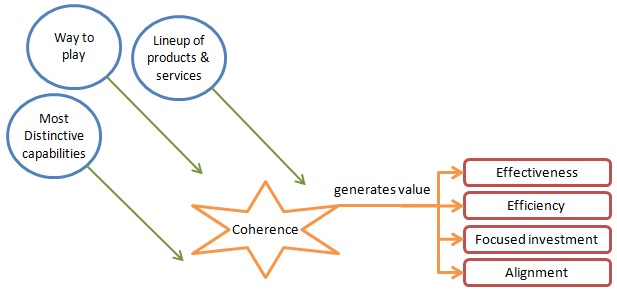The essential advantage defines coherence as a resolute, clear minded focus in a company on three critical elements: