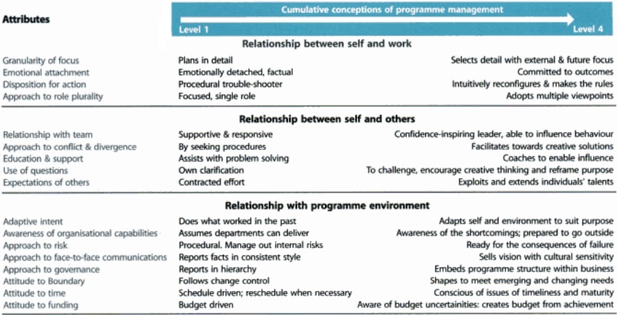Cranfield University did a research related to behavioral attributes of the leaders when working on programs. The summary table of this research is added to the Managing Successful Programs book.