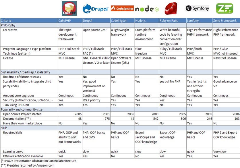 The number of frameworks analyzed is limited, basically I had not time for all it did not make sense for the customer. We did a selection that you can consider good or bad. We selected some different type of frameworks to give perspective to the customer about the different type of environments and the diversity that exist.