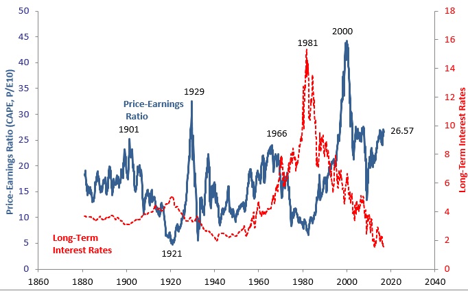 CAPE or Shiller Ratio October 11, 2016 by joapen I learned about the Cyclically Adjusted PE Ratio (CAPE Ratio) or Shriller ratio, and I found that in September 2016 this was 26,57. Looking into more data, I found this chart with data since 1880:
