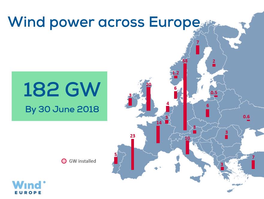 Wind Power in Europe May 4, 2021August 22, 2018 by joapen You visit https://windeurope.org/ and for instance this report where they do a summary of what happens in 2017.