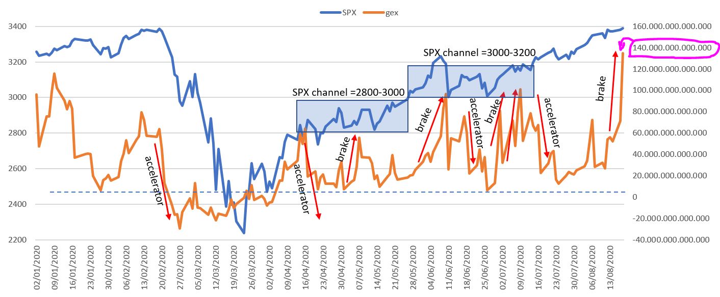 in the last week, the highest values in GEX means that the major buyers are using the “break” and the purchases are slowing down. On October 13th the highest seen: 153.455.662.942.850.