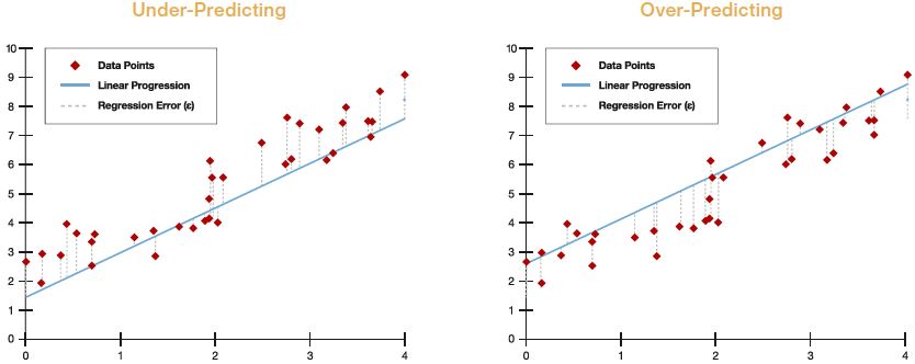 the left is under-predicting and the model on the right is over-predicting.