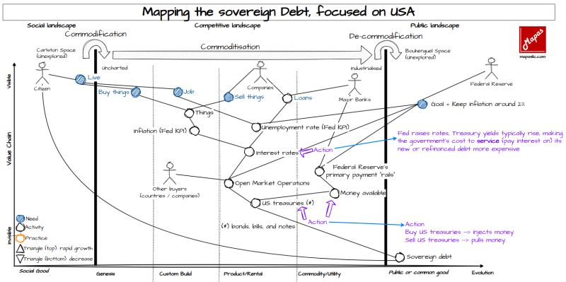 This map shows my understanding about how the citizen, companies, banks and Federal Reserve interact in a market, focusing on the main mechanisms used by the Fed (very simplified for sure).