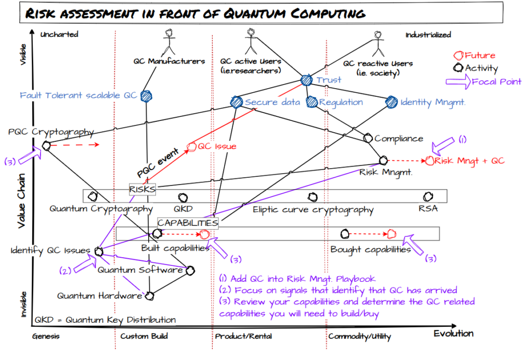 When this happens, there’s a complete revision of the capabilities the organization has, and early decisions about the ones that are going to be affected by the new risk (here the Quantum Computing capability as weapon against our existing security).